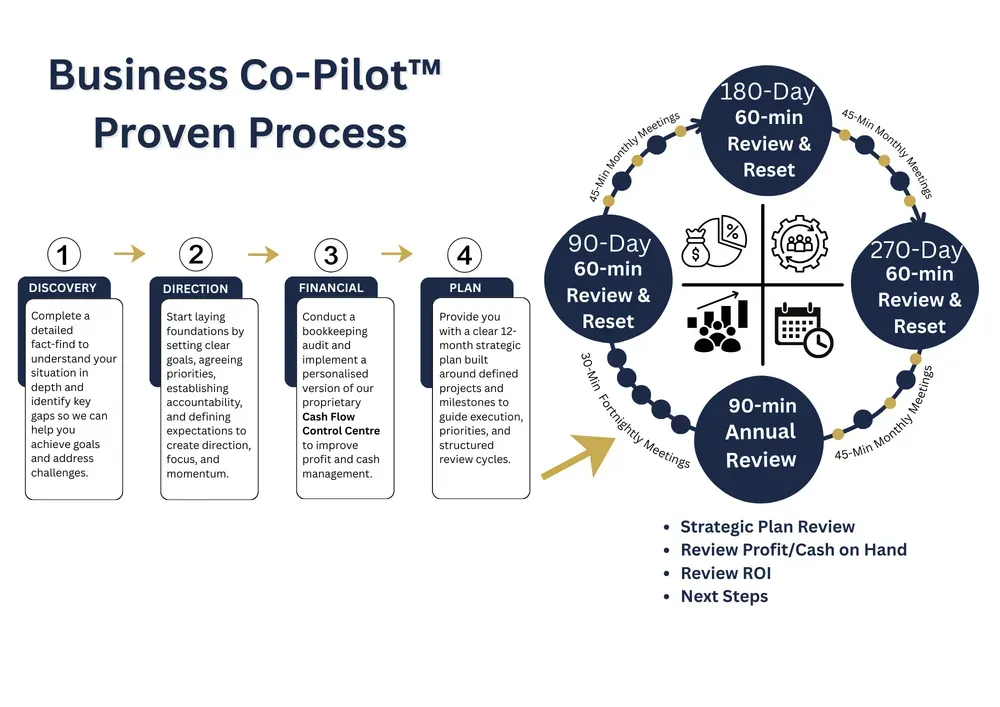 Our role isn’t to sell hype or theory. It’s to sit quietly beside you, fill the gaps, and help you fix the right things in the right order. With structure, clarity, and accountability in place, you finally get back control, profit, and freedom